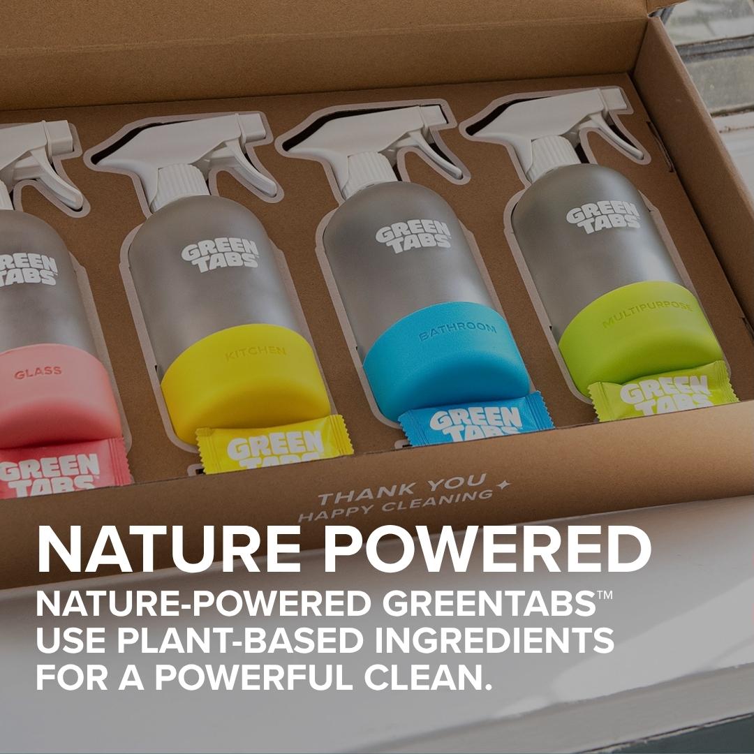 Plant-Powered Powerful Cleaning Spray GreenTabs™ Dissolve In Water To Tackle Grease, Grime & Dirt On All Surfaces. Plastic-Free, Vegan & Eco-Friendly For Daily Cleaning.